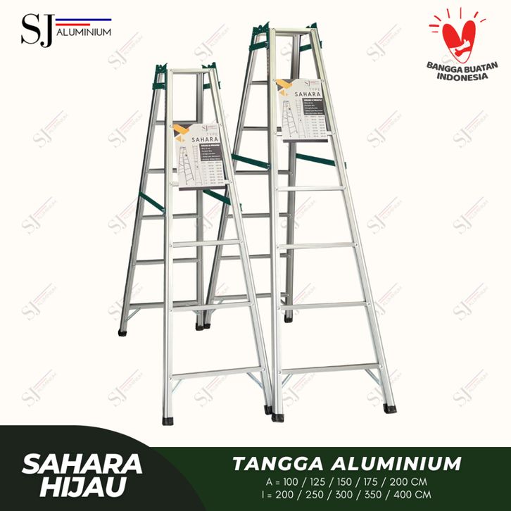 Tangga Lipat Aluminium Sahara Hijau Jumbo Ladder Multifungsi 200KG - Ukuran 1 M / 1,25 M / 1,5 M / 1,75 M / 2 M