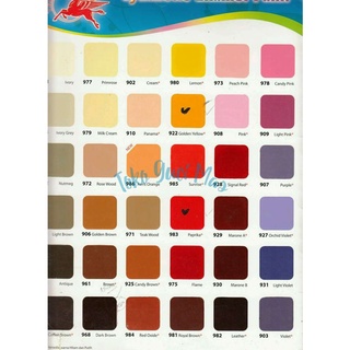 900 Medium Green , 902 Cream, 908 Pink, 922 Golden Yellow, 925 Candy Brown, 927 Orchid Violet, 928 Signal Red, 929 Marone, 938 Ultra Blue, 939 Sky Blue, 940 Grass Green, 941 Ocean Blue, 944 Azzure Blue, 950 Aqua Green, 952 Pewter, 961 Brown, Hitam, Putih, 981 Royal Brown, 983 Paprika, 985 Sunrise, 989 Pastel Green, 954 Deep Sea Green, 965 Dark Green, 967 Coffe Brown, 980 Kuning Lemon, 982 Leather, 984 Red Oxide, 990 Tropicana, 991 Meadow Fresh, 999 Bali Green
