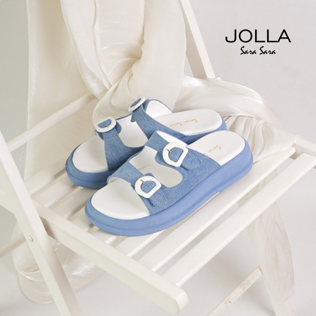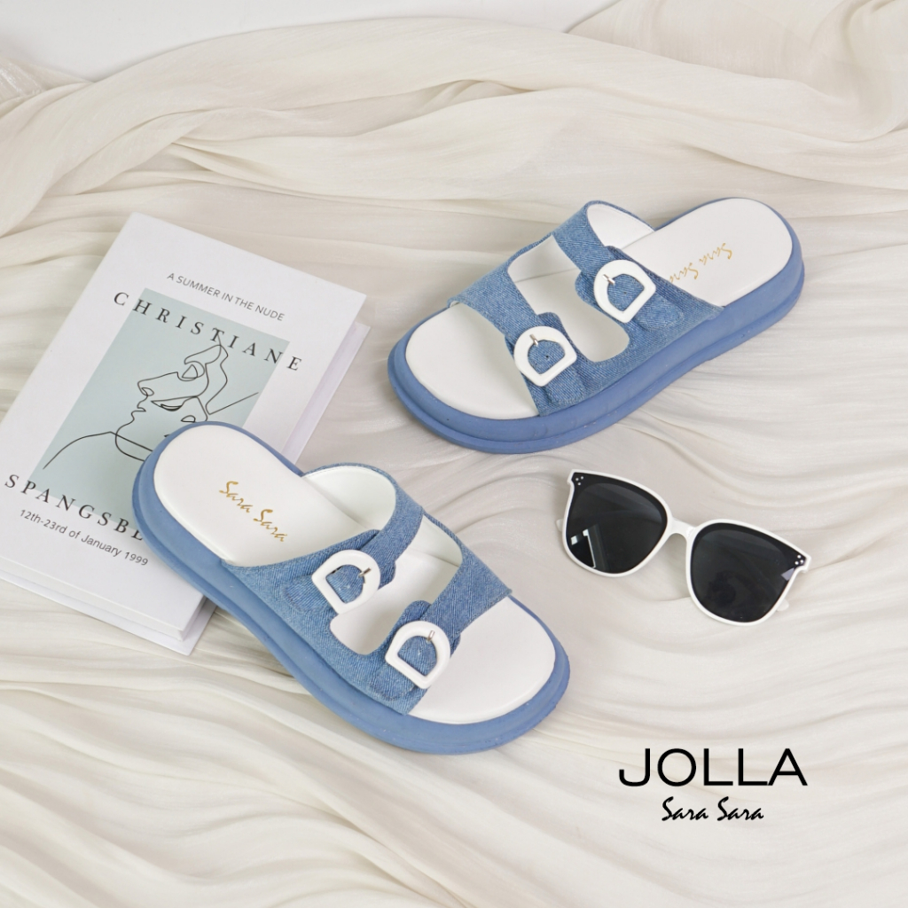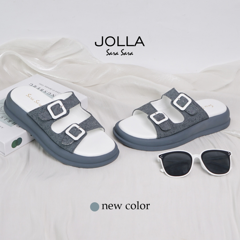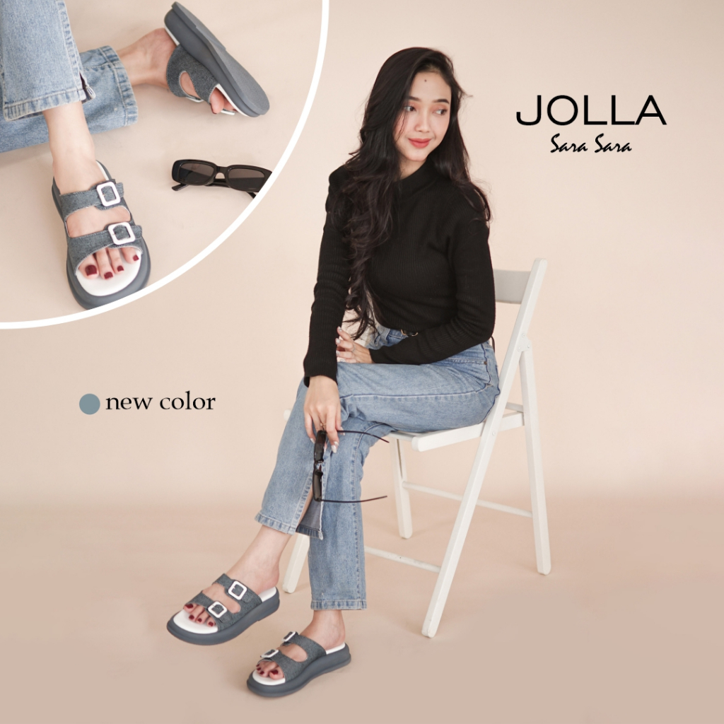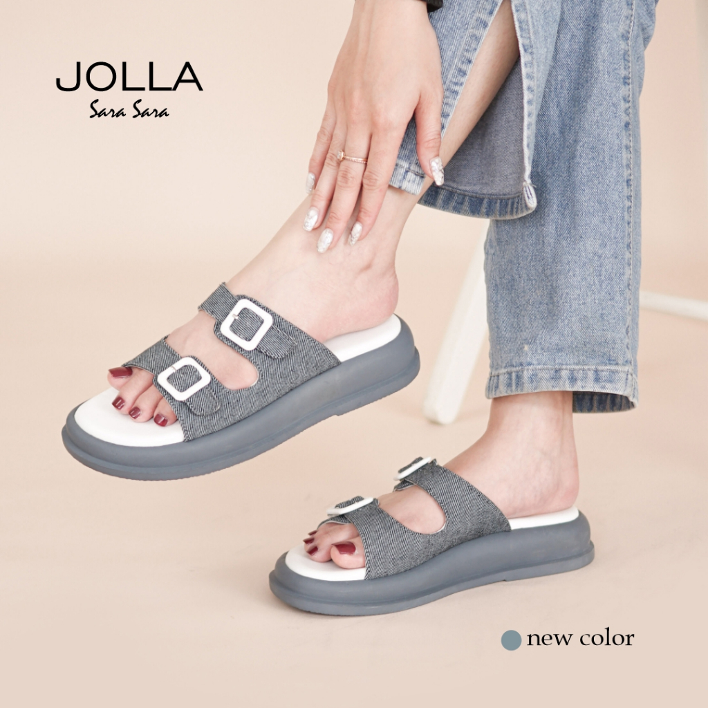 SARA SARA JOLLA DENIM GREY SANDAL SELOP WANITA PLATFORM SENDAL SLOP CEWEK CANTIK ELEGAN MEWAH