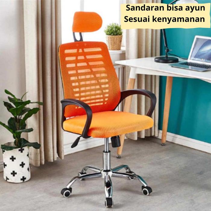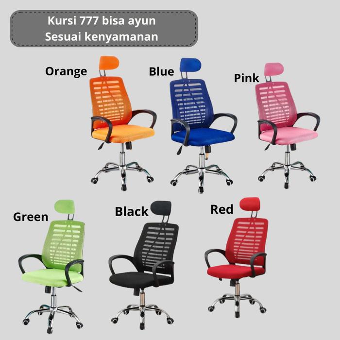TERLARIS KURSI KANTOR TYPE 777 HIDROLIK KURSI KERJA JARING PUTAR KURSI BELAJAR KOMPUTER ORANGE