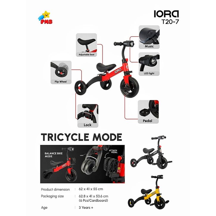 PREMIUM Sepeda Anak Roda 3 Tricycle PMB IORA - NUWA Balance Bike Push Bike Sepeda Anak Roda Tiga/Sepeda Anak ugofr
