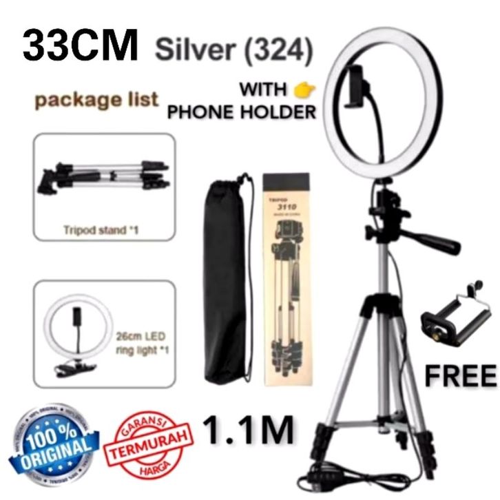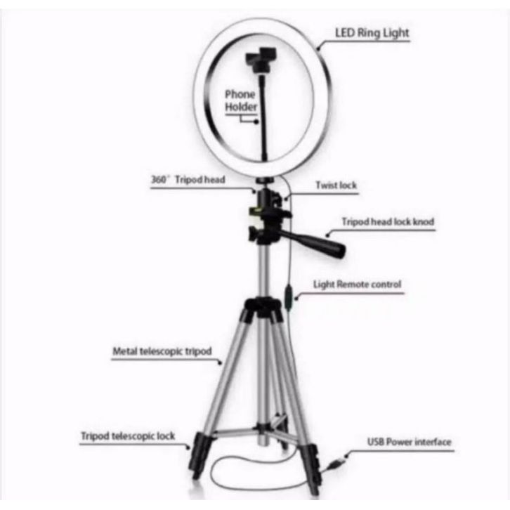 PAKET LAMPU RING LIGHT LED 26CM + TRI 3110A 1M SELFIE MAKE UP LIVE