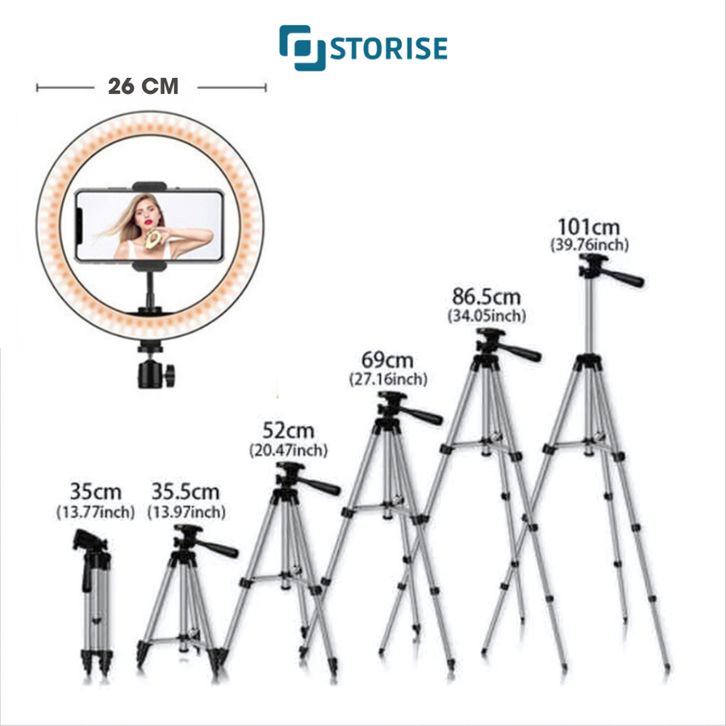 STORISE Paket Komplit Tri 1M + Ring Light LED 26 CM Stand HP Live Stream TikTok Selfie Make Up Vlog Lampu