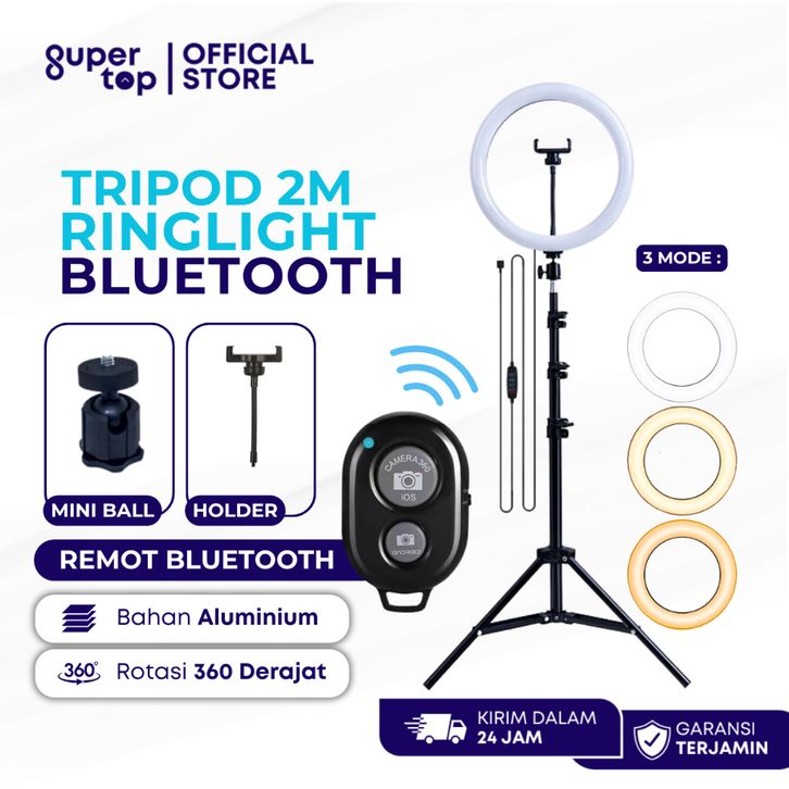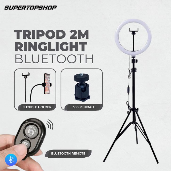 Tri Ringlight plus Remot Bluetooth Selfie - Tri Hp 2 Meter plus Ringlight 26cm Bluetooth Paket tripot lampu