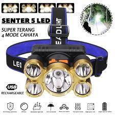 SGB SENTER KEPALA 5 LED SUPER TERANG USB RECHARGEABLE WATERPROOF ANTI AIR 45W 4 M0DE CAHAYA PUTIH