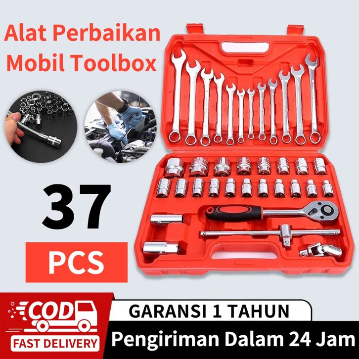 BEST SELLER 37PCS Kunci Pas Set Alat Perbaikan Mobil Toolbox/Kunci Set 37Pcs Set Kunci Perbaikan Mobil Tool Kit Set Ala