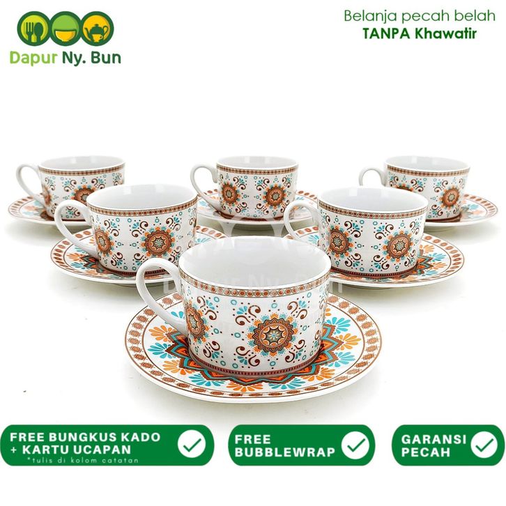 6 Pasang Cangkir Set Motif Marakesh / 6 Cangkir Kopi & 6 Alas Cangkir