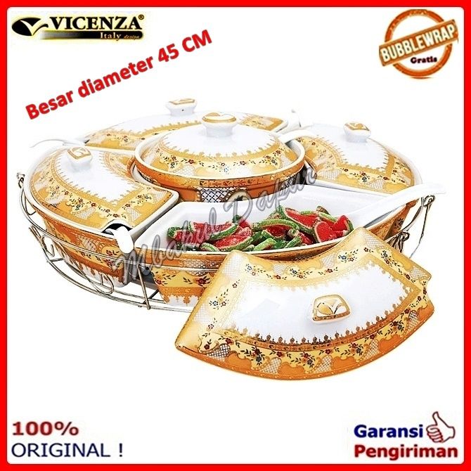 Wadah Saji Prasmanan Keramik Plus Pemutar Plastik 45 CM Motif Vicenza BBA 472