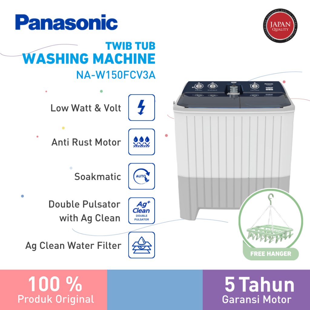 Panasonic NA-W150FCV3A Mesin Cuci 2 Tabung KUAT Series [15 Kg] - Grey