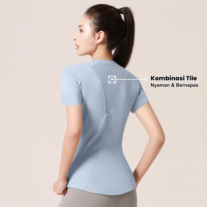 YOUMI Baju Olahraga Wanita Yoga Gym T-Shirt Lengan Pendek Tile V YM079