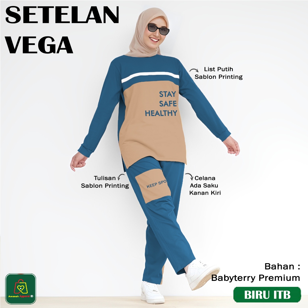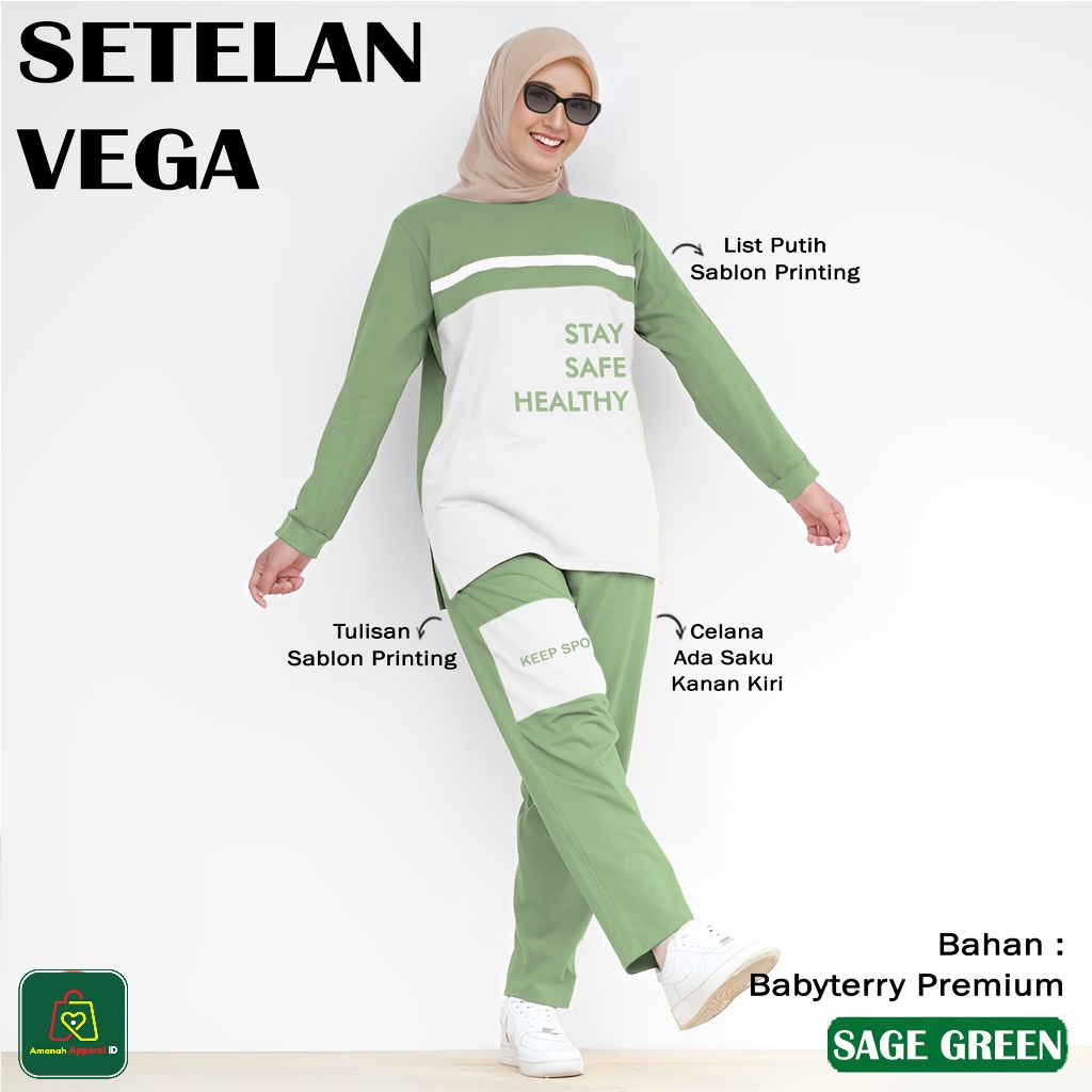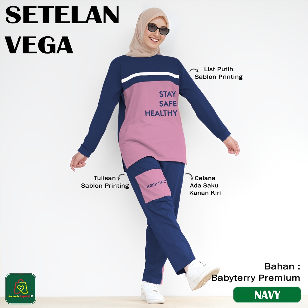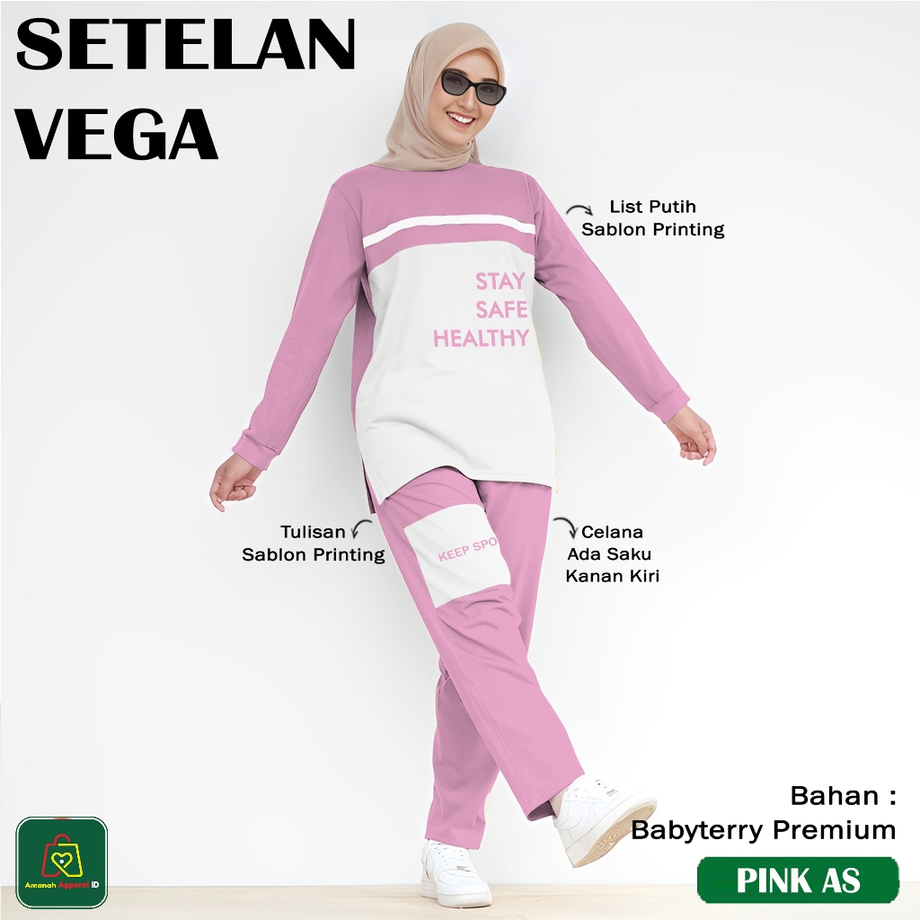 VEGA SET Setelan Training Olahraga Senam Wanita Muslimah Babyterry Lengan Panjang Size L - 3XL / 35564