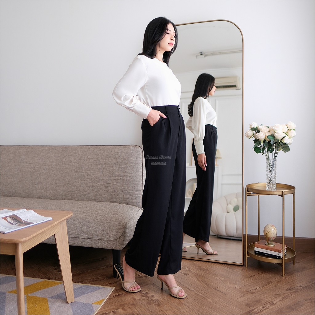 Celana Kantor Formal / Casual Highwaist Loose Pants Trousers Wanita Bahan Super Premium - Tersedia 4 Ukuran S M L X