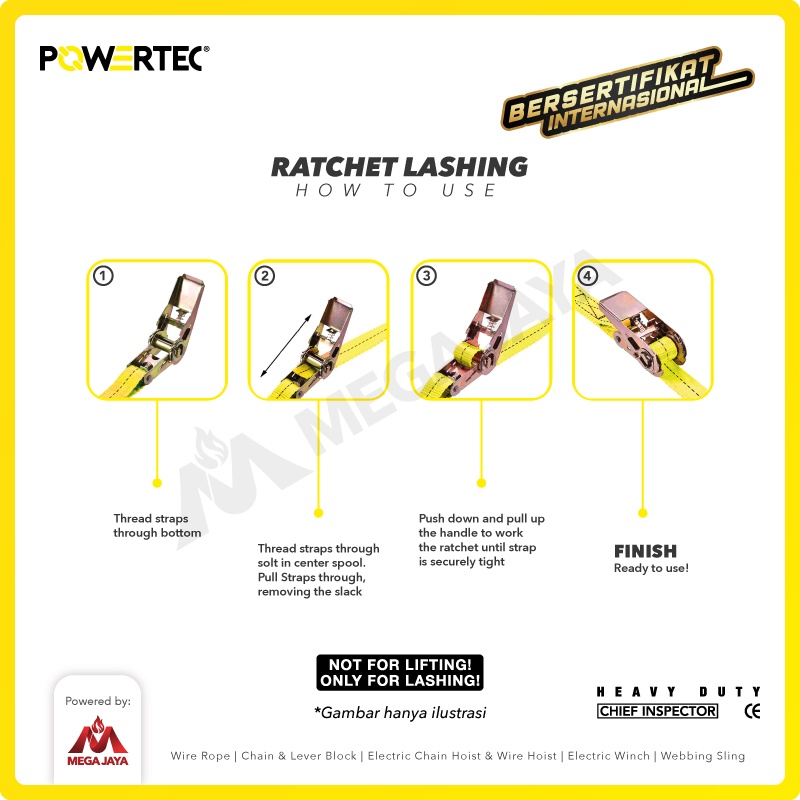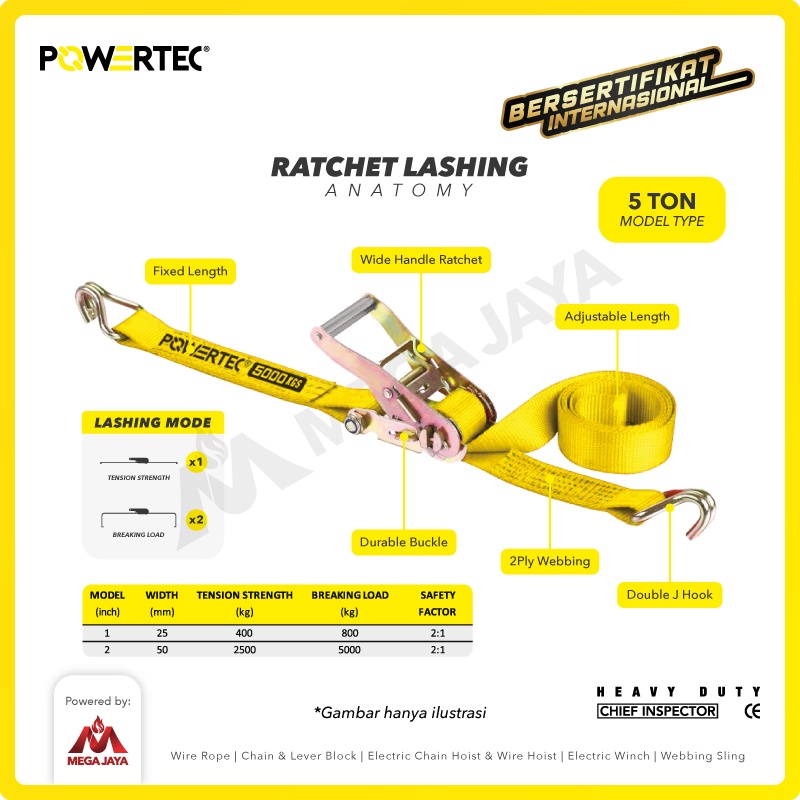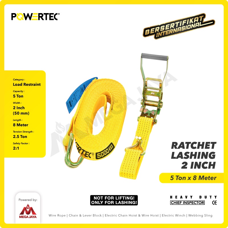 POWERTEC Ratchet Tie Down Cargo Belt 2" x 8M Pengikat Barang