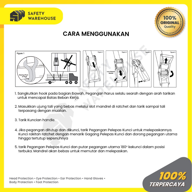 Ratchet Tie Down 5Ton x 10M / Cargo Pengikat Barang Webbing 2"