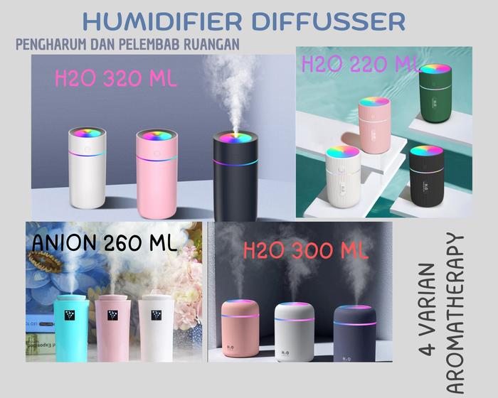 TERLARIS HUMIDIFIER AIR DIFFUSER H20 USB PELEMBAB UDARA PURIFIER DENGAN LAMPU 220ML HITAM