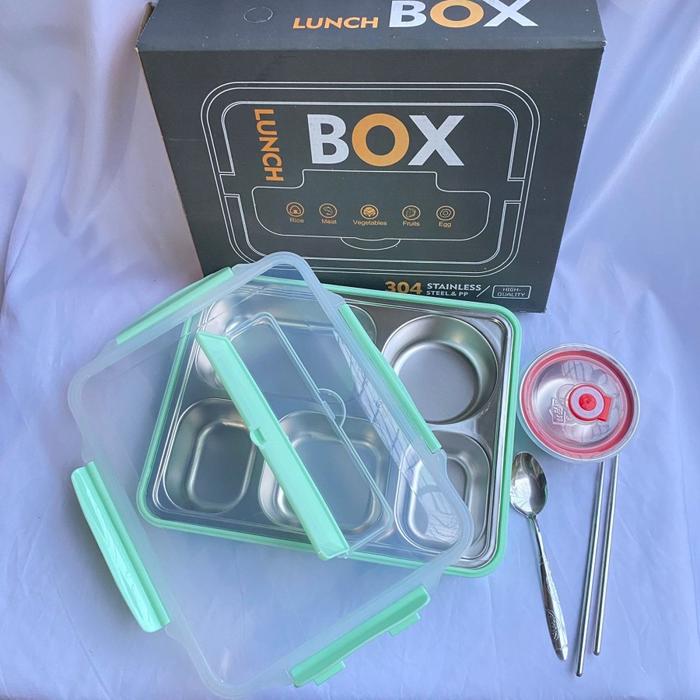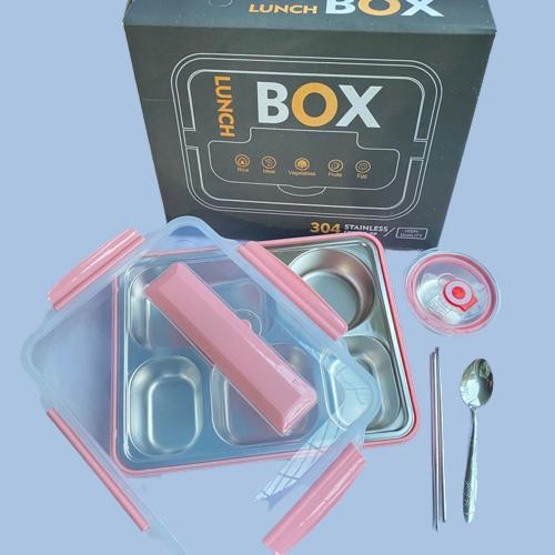TERLARIS LUNCH BOX STAINLESS TEMPAT MAKAN 5 SEKAT ANTI TUMPAH DAN TAHAN PANAS PINK NO BOWL