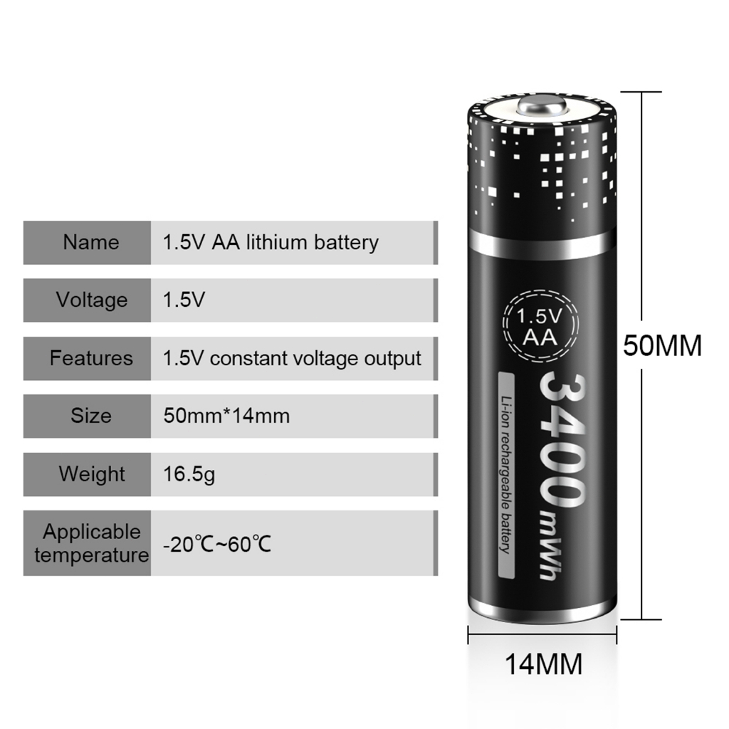 Cityork Baterai Cas Isi Ulang 2/4/6/8Pcs AA A2 1.5V 3400mWh Long Battery Life Rechargeable Lithium Batre With Baterai ca