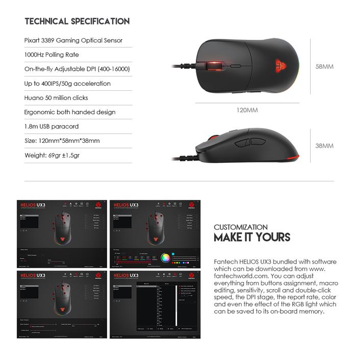 TERLARIS FANTECH HELIOS UX3 MOUSE GAMING RGB PIXART 3389 PUTIH