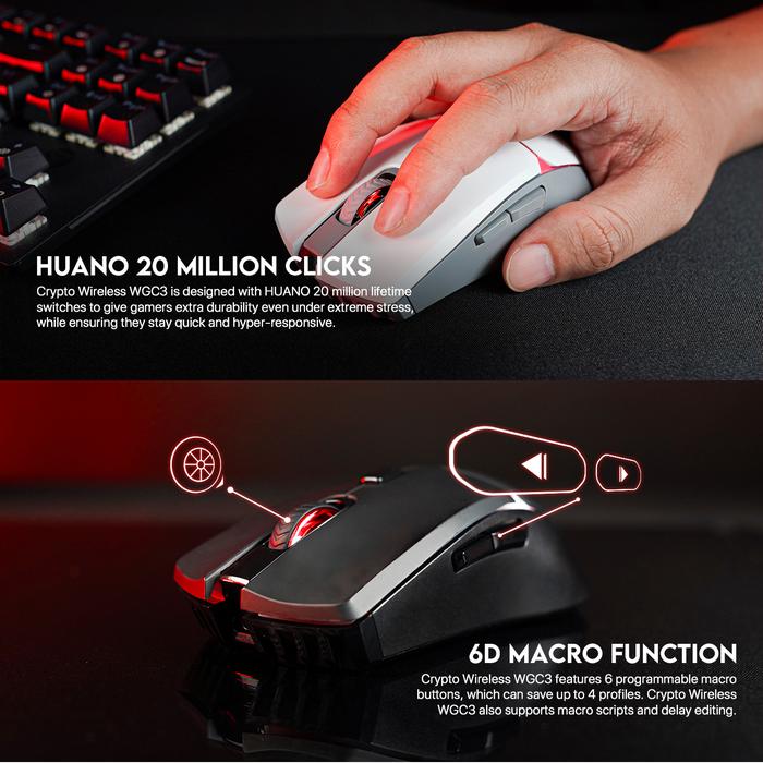 TERLARIS FANTECH DUAL MODE WIRELESS MOUSE GAMING WGC3 RECHARGEABLE PIXART 3325 KABEL BATERAI COMPUTER PUTIH