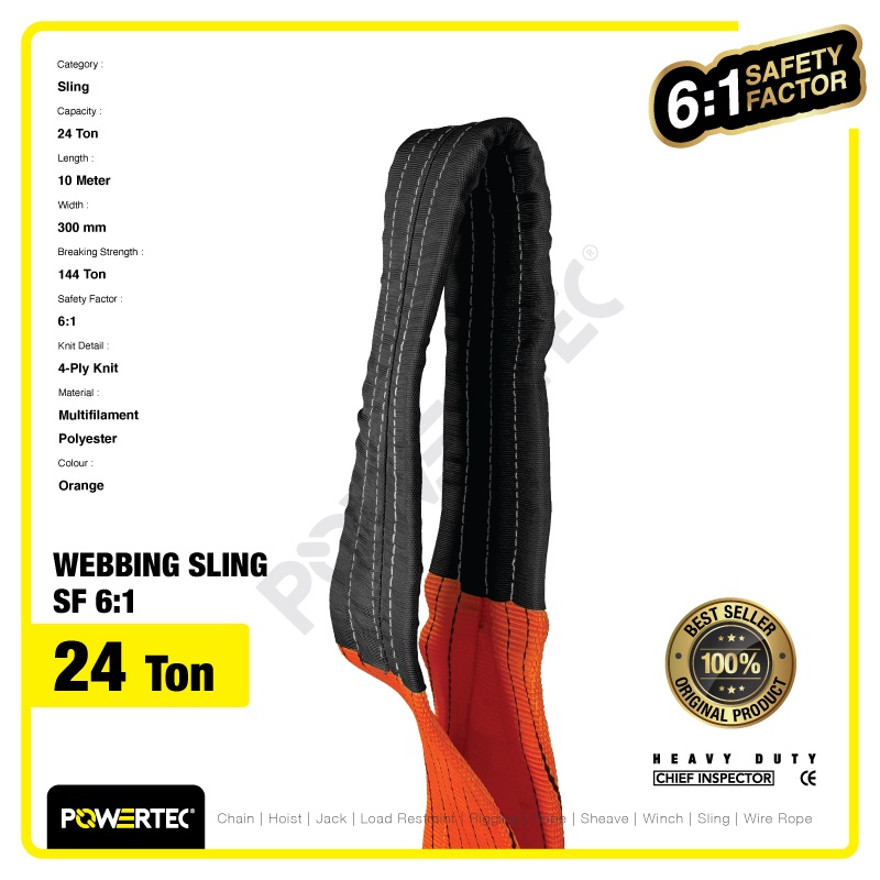 POWERTEC Webbing Sling Belt / Tali Angkat 24 Ton x 10 Meter Double