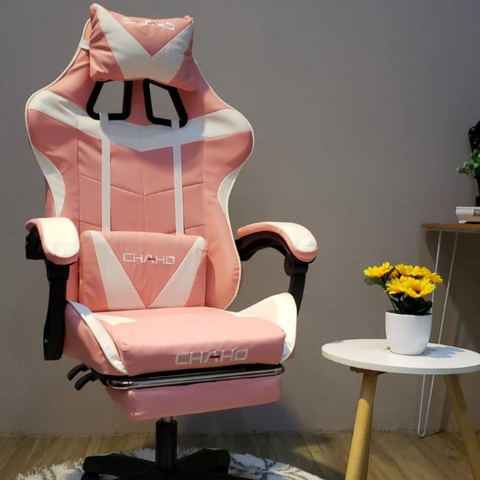 TERLARIS KURSI GAMING GAMING CHAIR KURSI GAMING HIDROLIK PLUS FOOTREST TERMURAH 373 PINK