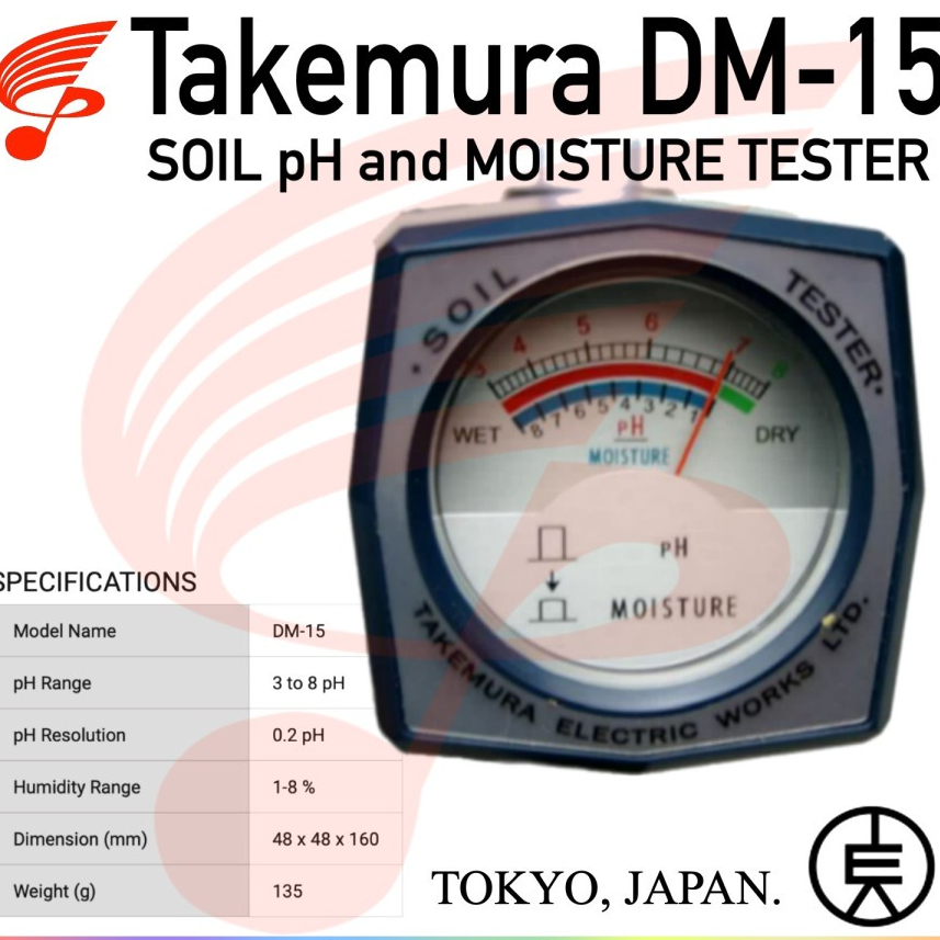 Takemura Soil Moisture Meter Tester Humidity Ukur Kelembapan pH Tanah DM15 DM 15 New Original BA901