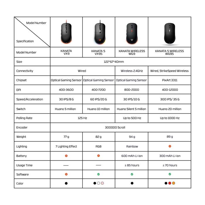 TERLARIS FANTECH KANATA S MOUSE GAMING WIRELESS RGB MACRO WG9 WG9S VX9 VX9S DPI 7200 HITAM KANATA WIRED