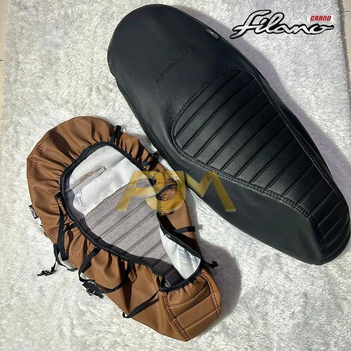 DP 0 COVER JOK CAFERACER GRAND FILANO (LANGSUNG PASANG PAKAI KARET) SARUNG JOK PRESS BUSA COKLAT SARUNGJOK MOTORMERAH