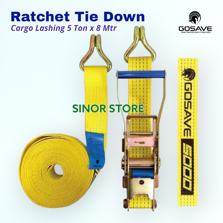 Cargo 5 Ton x 8 M GOSAVE Webbing Cargo Belt Rachet Tie Down Trackbelt Tali Pengikat Truck