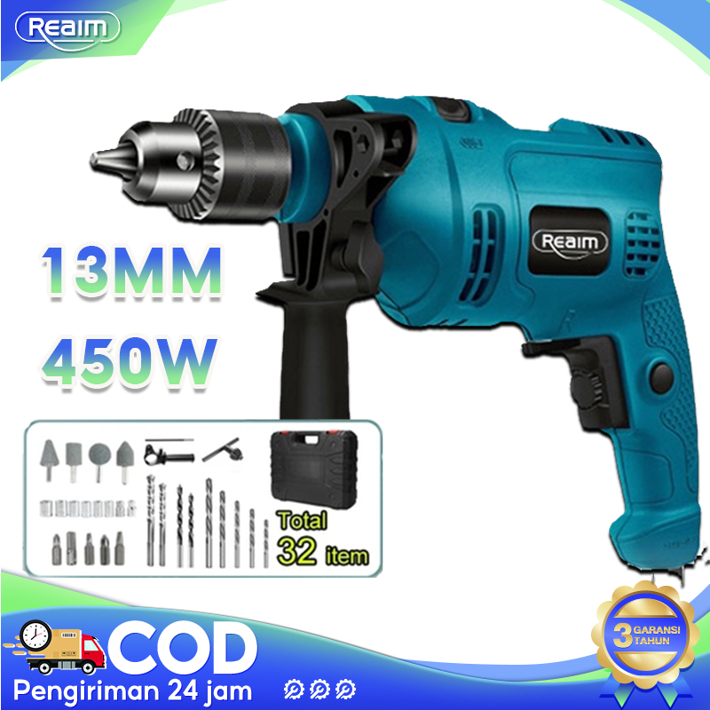 Reaim 13MM Mesin Bor Listrik Impact Drill Listrik Bor Beton Bor Tembok Alat Bor Bor Obeng Bor Kayu