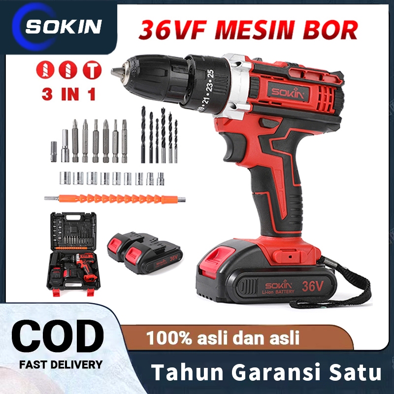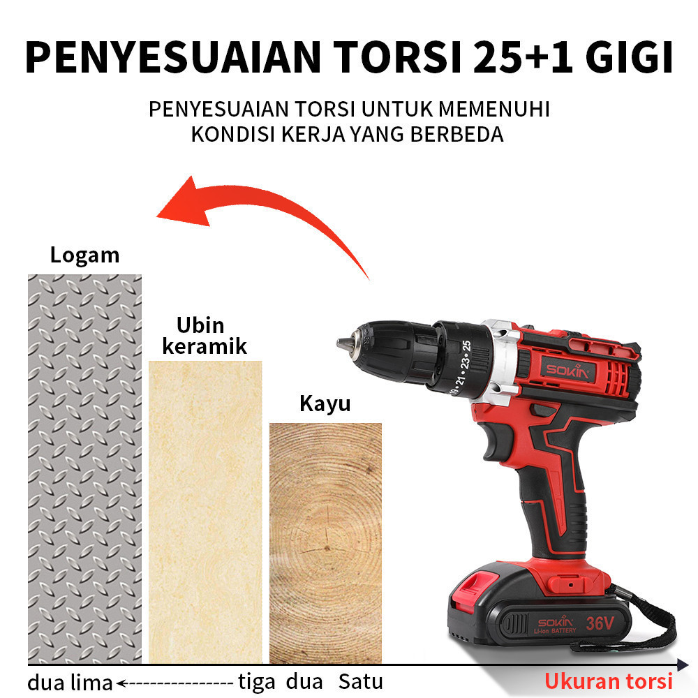BISA ! 36vf Mesin bor 2baterai cas 10mm bor listrik murah bor tangan baterai besi tembok Beton kayu - Cordless Drill bor