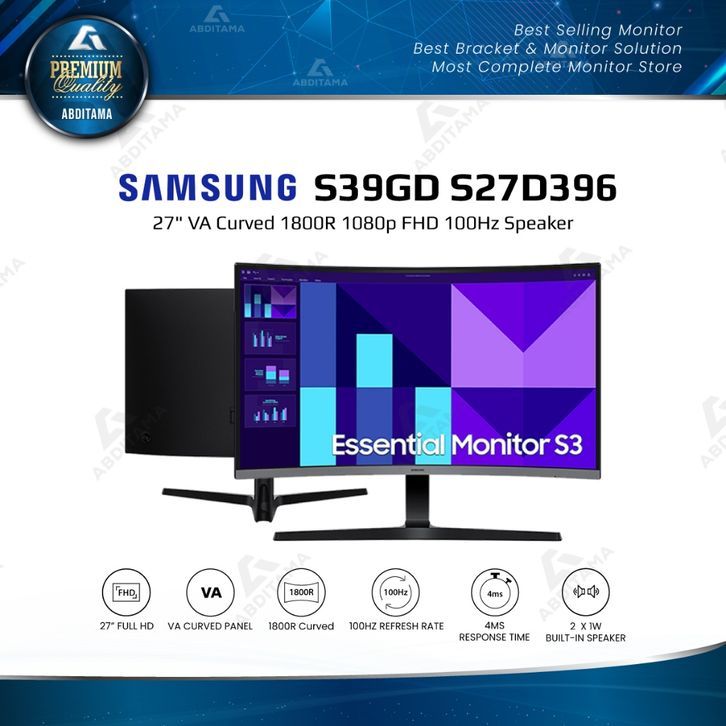 Monitor LED Samsung S39GD LS27D396GAEXXD S27D396 27" VA Curved 1800R 1080p FHD 100Hz VGA HDMI Audio-Out Speaker Vesa