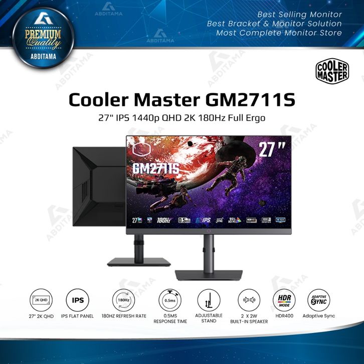 Monitor LED Cooler Master GM2711S 27" IPS 1440p QHD 2K 180Hz HDMI 2.0x2 DP 1.4x1 Full Ergonomic HDR400 USB Port Audio
