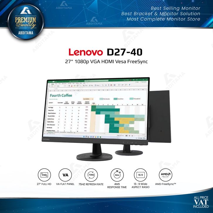 Monitor LED Len. D27-40 27" 1080p VGA HDMI Vesa FreeSync