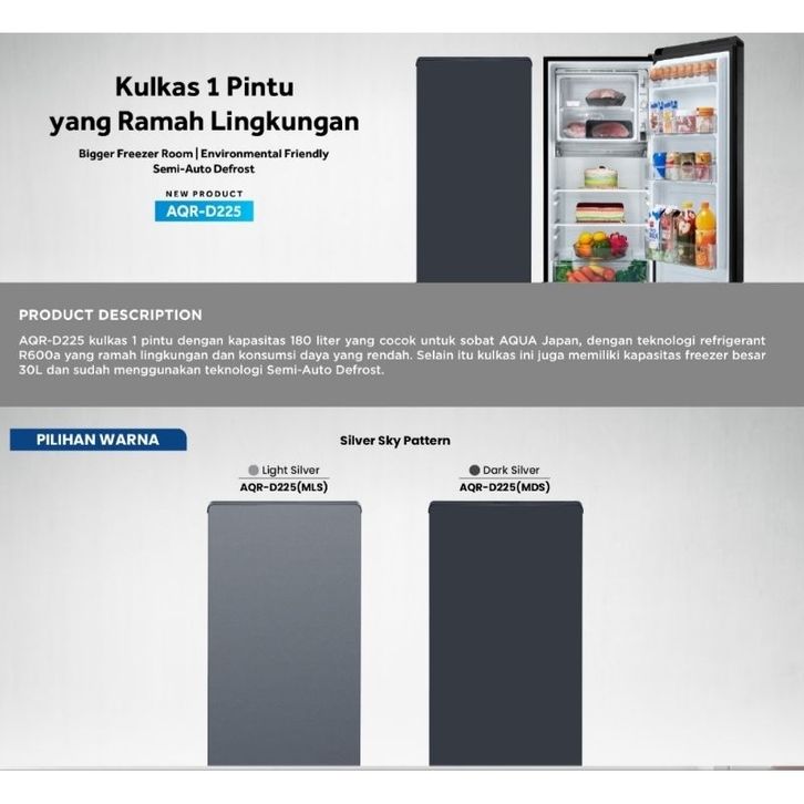 AQUA JAPAN LEMARI ES 1 PINTU 180 LITER AQRD-225 MDS/MLS