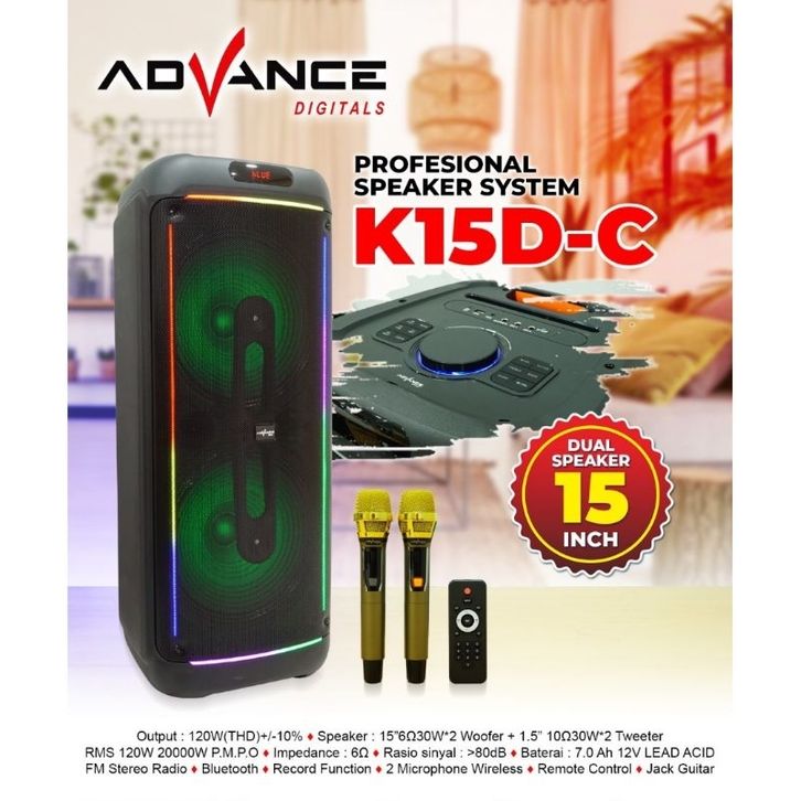 ADVANCE PROFESIONAL SPEAKER SYSTEM DUAL 15 INCH FREE 2 MIC K15D-C