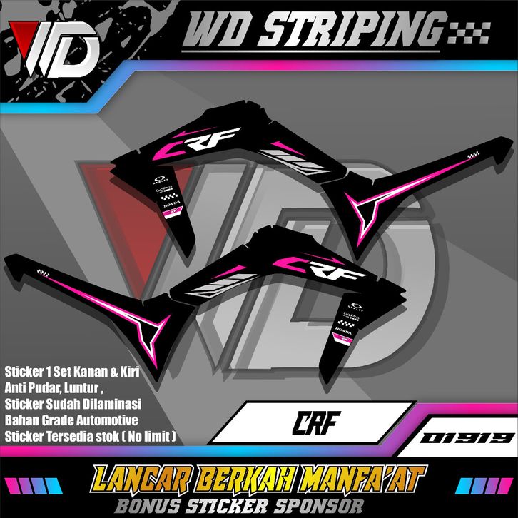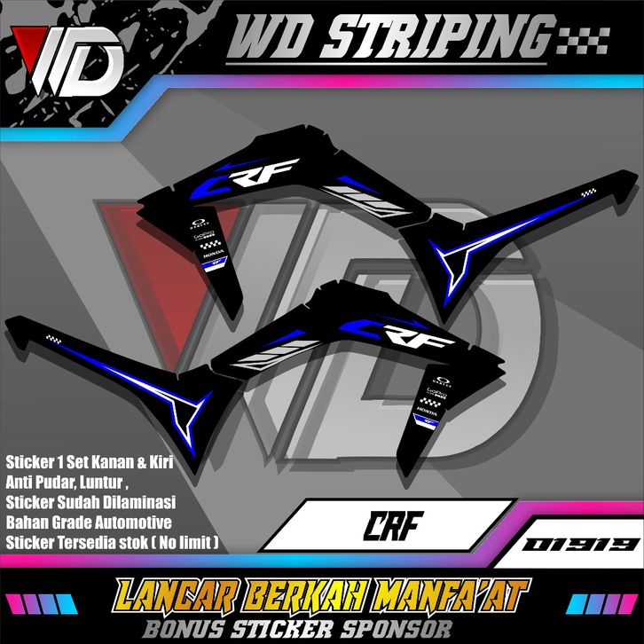 ( MURAH ) 01919 Setiker Stiker Sticker Striping CRF Motif Supermoto Satu Set Kanan Kiri Variasi