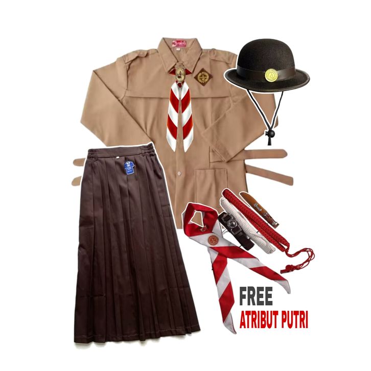 seragam sekolah Setelan Seragam Pramuka SD Panjang Anak Perempuan Kelas 1-6 SD Free Atribut Pramuka & Topi Boni