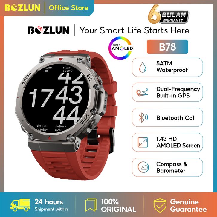 BOZLUN B78 Smartwatch 5ATM GPS AMOLED 100+ M0De Olahraga Kompas & Barometer Panggilan Bluetooth