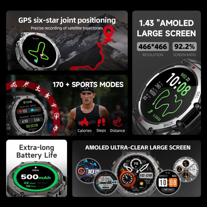 SKMEI B78 Smartwatch Pria GPS Map | 1.43 Amoled | 5ATM Waterproof | Compass | Bluetooth Call Altitude Air Pressure jam