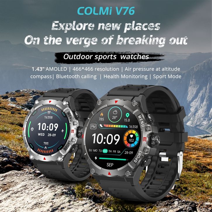 COLMI V76 Smartwatch | Built-in GPS |1.43 AMOLED screen | Compass | Barometer | Precise positioning | 500mAh Battery