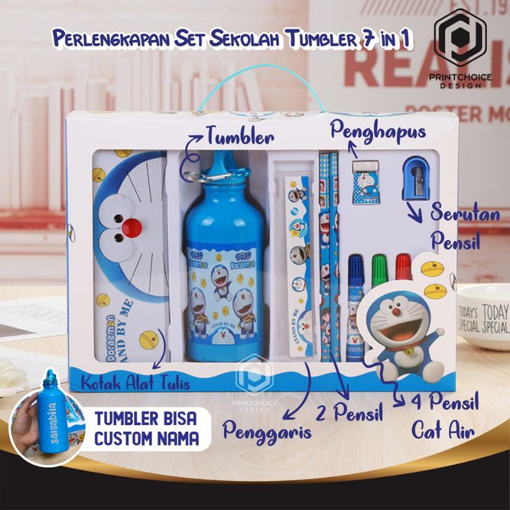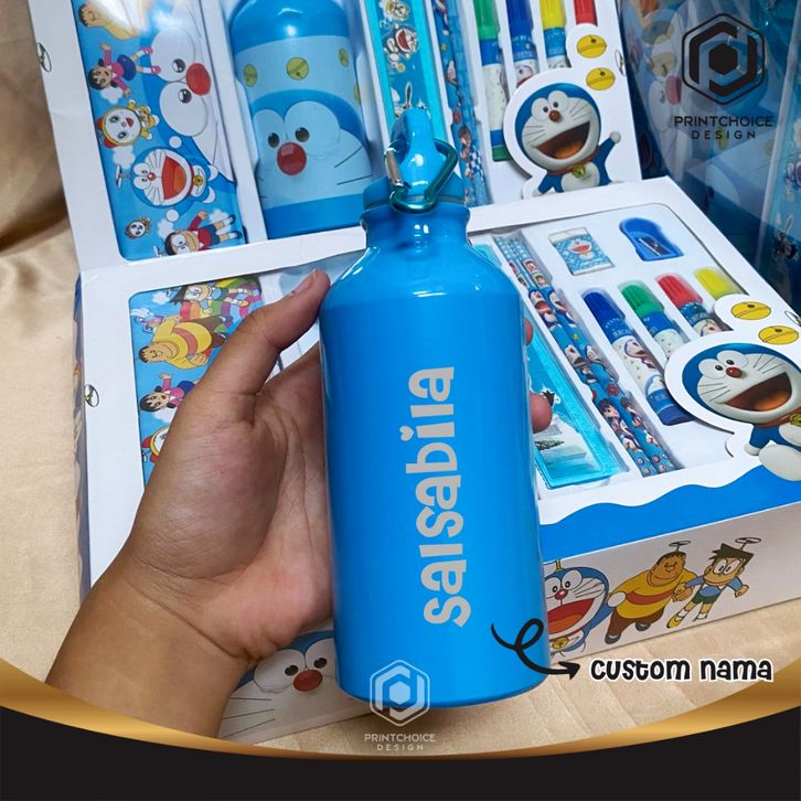 alat tulis sekolah lengkap Paket Alat Tulis Set Tumbler Botol Minum 7 in 1 Motif Karakter Doraemon Frozen Spiderman Pri
