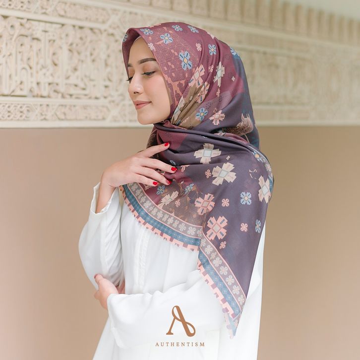 SHANNA SERIES / DEEP RED KERUDUNG SEGI EMPAT MOTIF VOAL ULTRAFINE PREMIUM LASERCUT AUTHENTISM