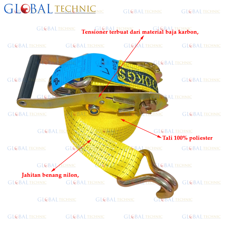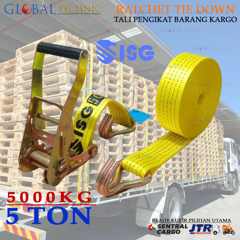 Ratchet Tie Down Webbing Belt 5CM X 6-12 Meter 5 TON Double / Tali Ikat Barang Kargo