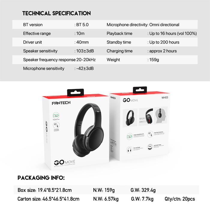 TERLARIS FANTECH HEADPHONE BLUETOOTH HEADSET WIRELESS GO MOVE WH03 EARPHONES HEADPHONES BEIGE