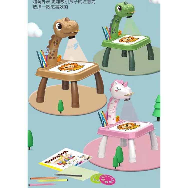 Terbaru Mainan Meja Gambar Anak Proyektor Dino Dan Pony / Meja Menggambar Proyeksi Gambar Berwarna / Drawing Projector