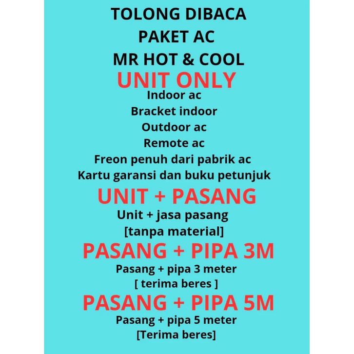 PASANG PIPA 10M, PASANG PIPA 3M, PASANG PIPA 5M, PASANG PIPA 6M, PASANG PIPA 7M, PASANG PIPA 8M, PASANG PIPA 9M, UNIT ONLY, UNIT PASANG