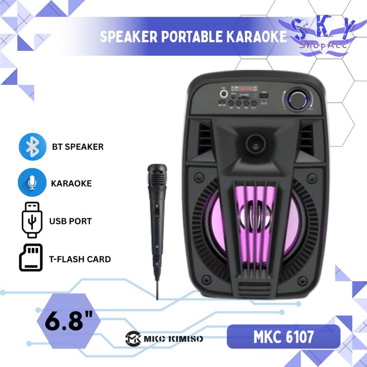 Speaker Bluetooth 6107 Portable Ukuran 6.8 Inch Free Mic