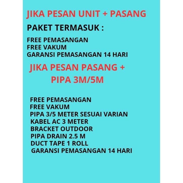 PASANG PIPA 10M, PASANG PIPA 3M, PASANG PIPA 5M, PASANG PIPA 6M, PASANG PIPA 7M, PASANG PIPA 8M, PASANG PIPA 9M, UNIT + PASANG, UNIT ONLY