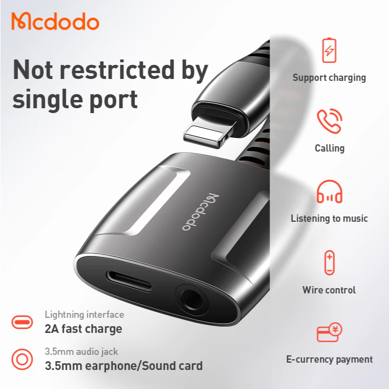 MCDODO Converter Splitter For iPhone Lightning Ke Jack 3.5mm + Lightning Charging Audio Call Open Mic CA-6340